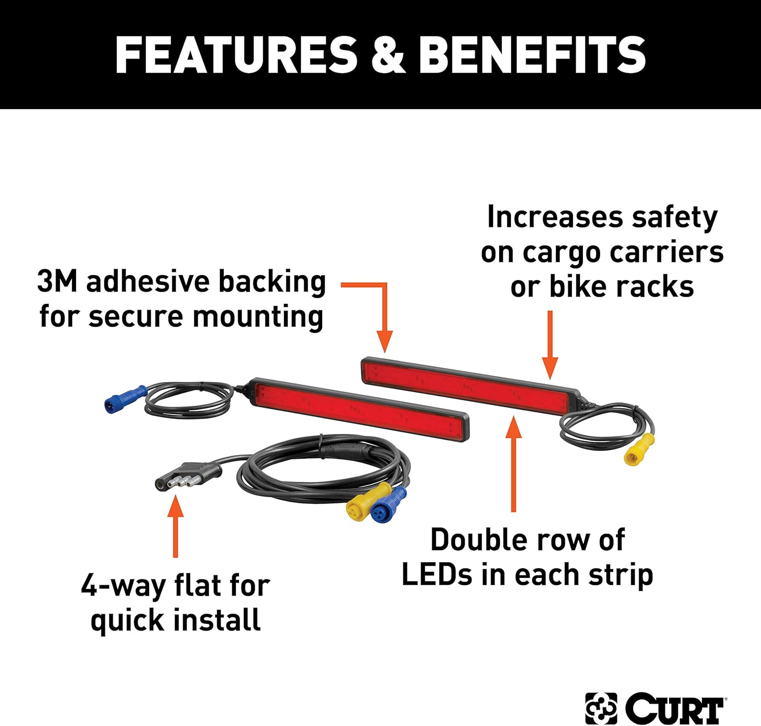 CURT 53201 Auxiliary Automotive LED Light Strips for Hitch Cargo Carrier, Bike