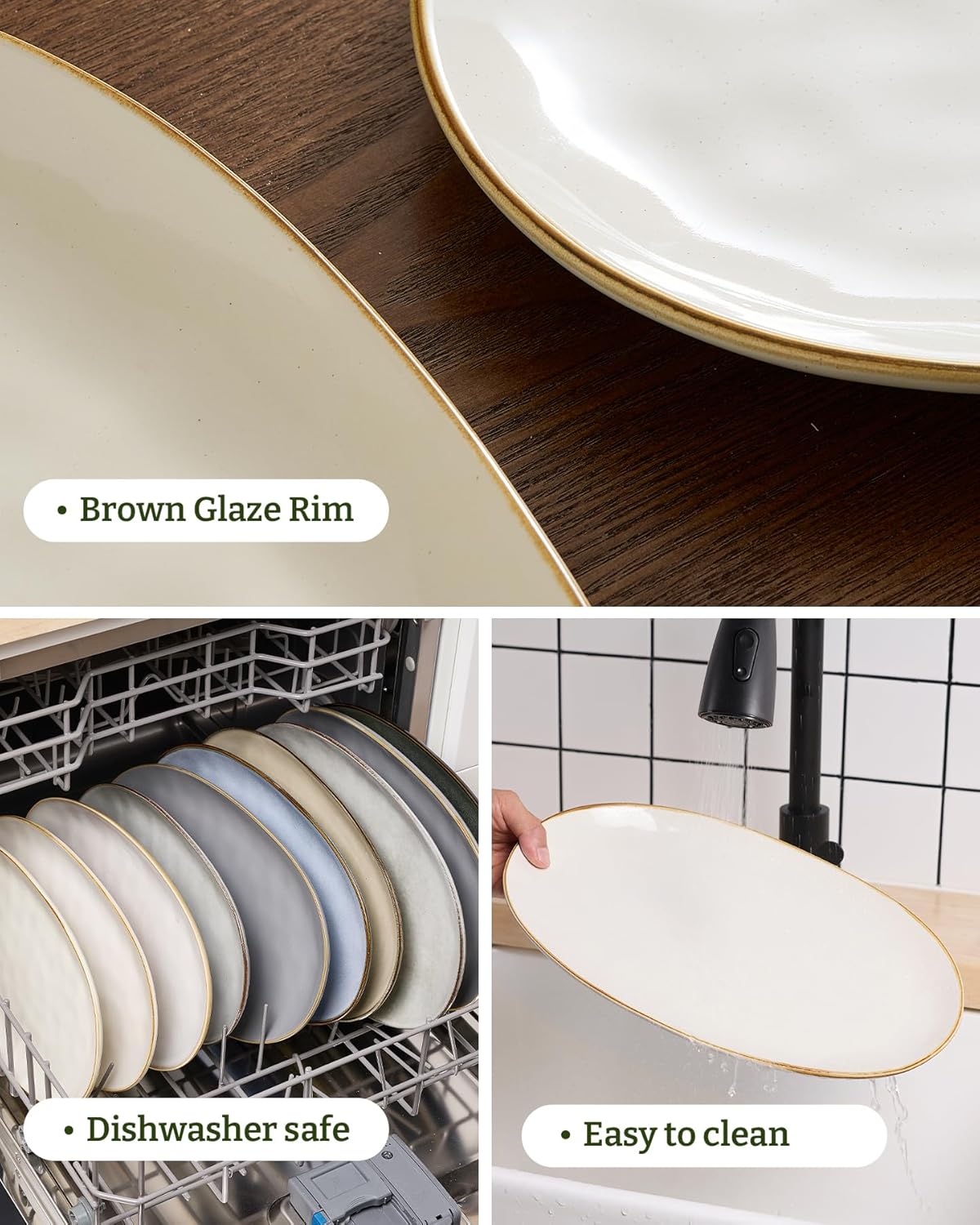 Dishwasher and Microwave Saf: Famiware oval plates are made of premium stoneware. Each serving platters and trays is Dishwasher and microwave safe.
